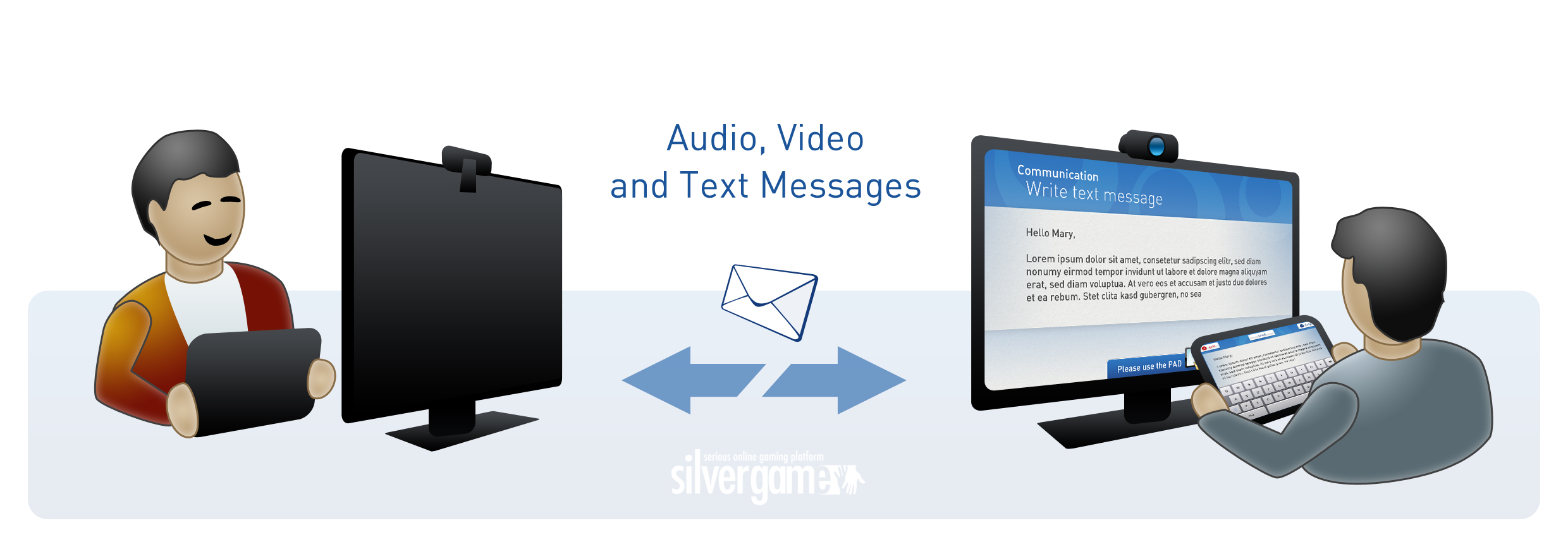 The envisioned platform is conceived as an integrated solution which combines sensor-controlled serious gaming, web-based information services and interactive entertainment and which brings all that onto a standard television set – a technological environment elderly people are so much more familiar with than a PC. Regarding an appropriately intuitive controller, the Silvergame consortium has been doing successful user acceptance tests with a specially interfaced touchscreen application running on an iPad or tablet PC. Using open standards and allowing interoperability, the Silvergame platform wants to make future upgrades to the pilot applications just as easy as the integration of new applications at a later stage in the development.